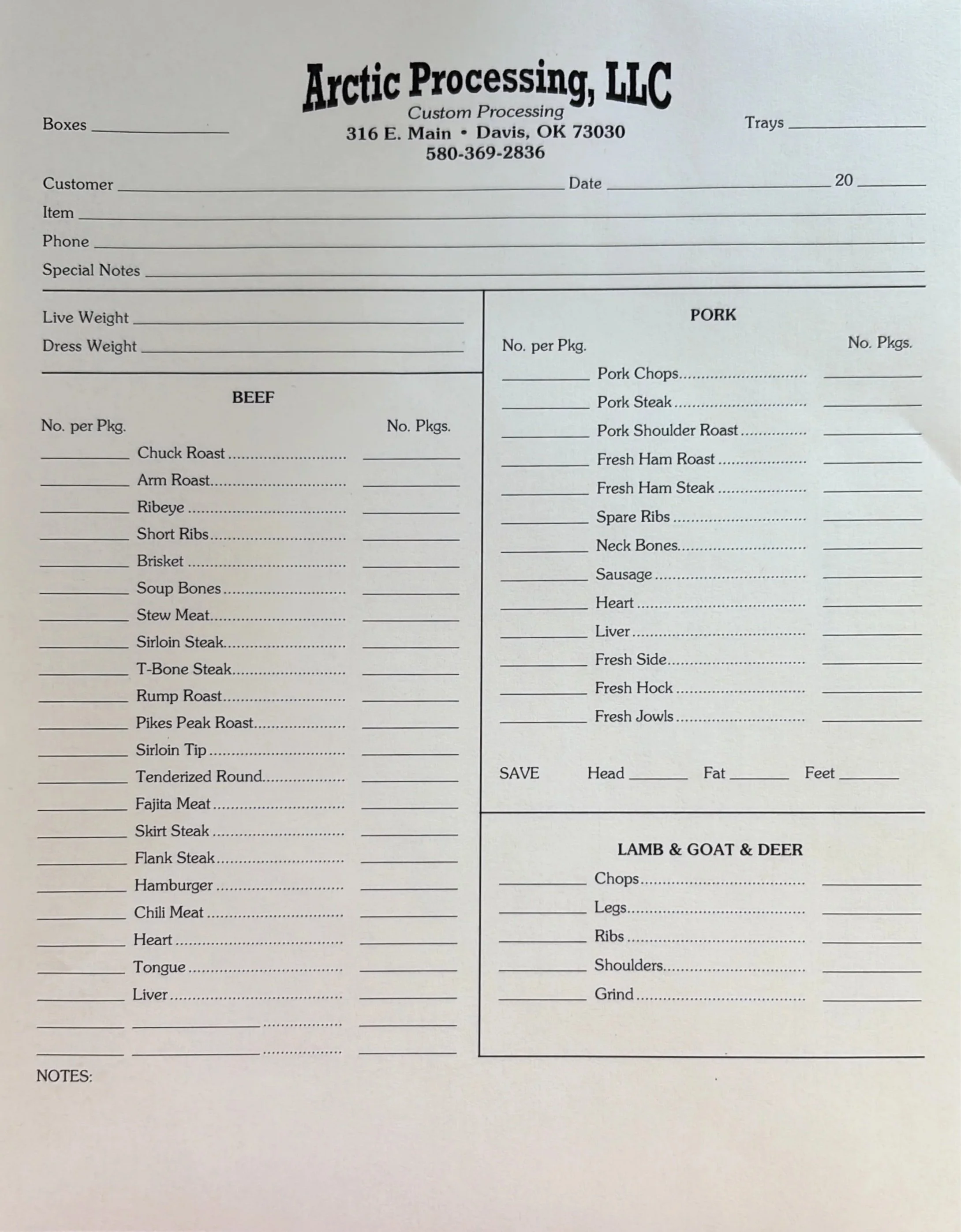 Please feel free to download our processing form and to select the specific processing instructions you would prefer for your deer. You can then submit this form with your deer for processing, and we will take care of the rest!
